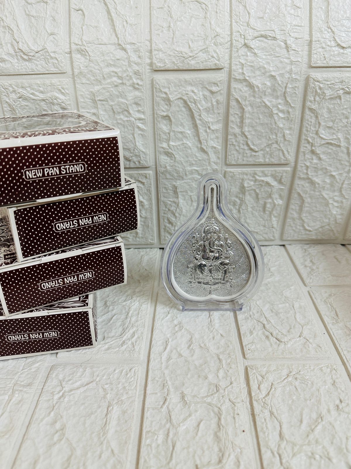 German Silver Ganesha Frame – 5×4 Inches | Leaf Shape